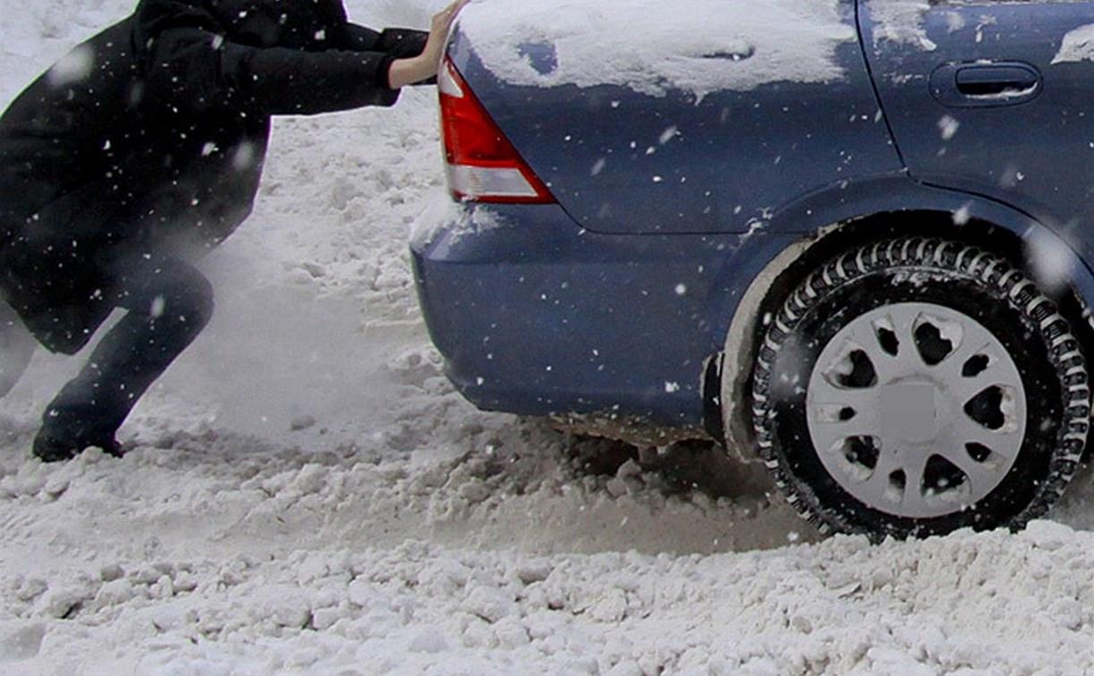 Толкают машину в снегу