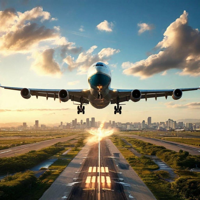 ![Взлет самолета]()