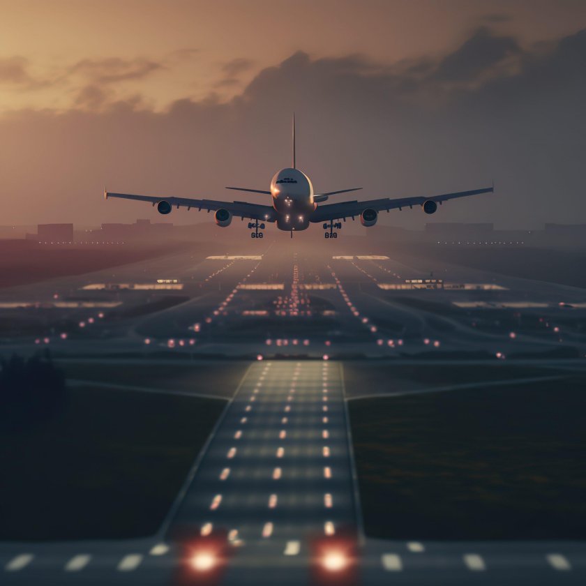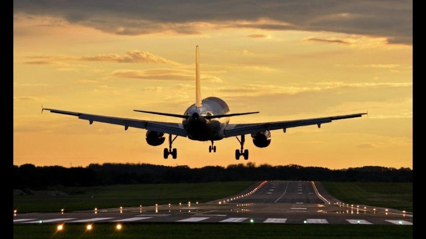 Самолет над взлетной полосой