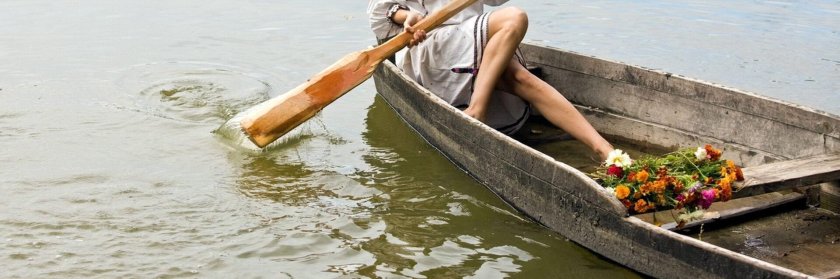 Человек плывет на лодке